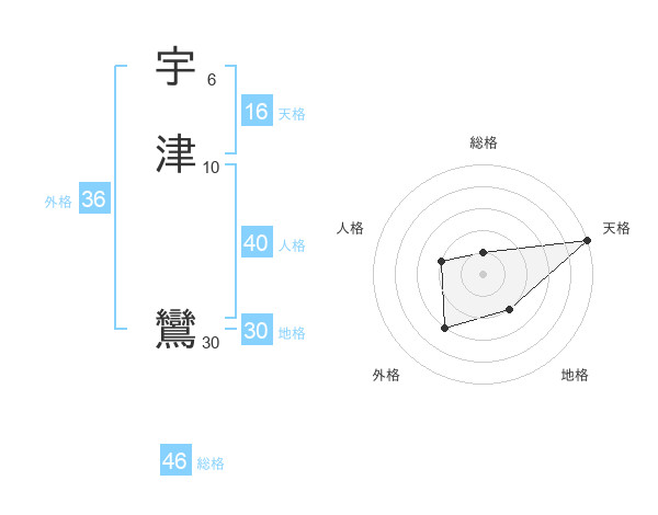 宇津 鸞さんを姓名の画数から五運を鑑定