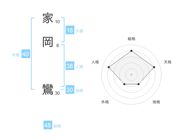家岡 鸞さんを姓名の画数から五運を鑑定