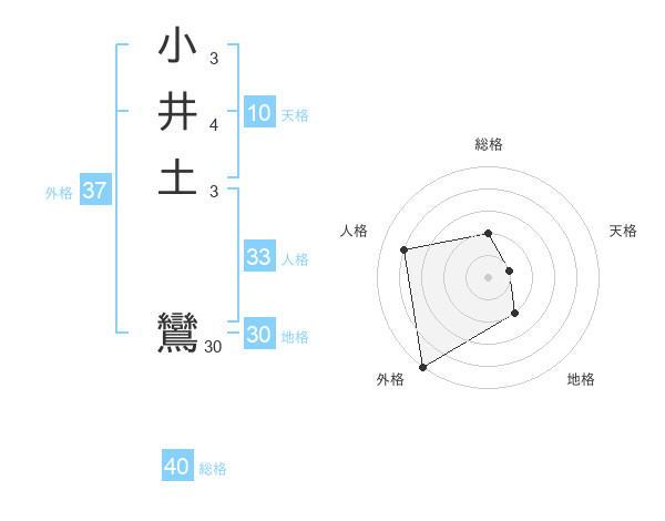 小井土 鸞さんの総格は40画の2点!