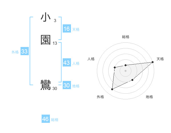 小園 鸞さんの天格は16画の5点!