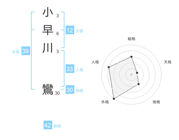 小早川 鸞さんの外格は39画の5点!