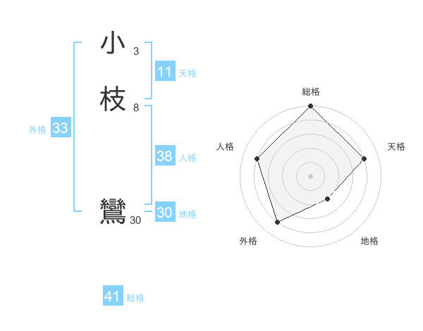 小枝 鸞さんの総格は41画の5点!