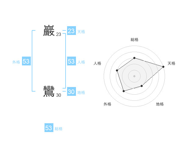 巖 鸞さんの外格は53画の3点!