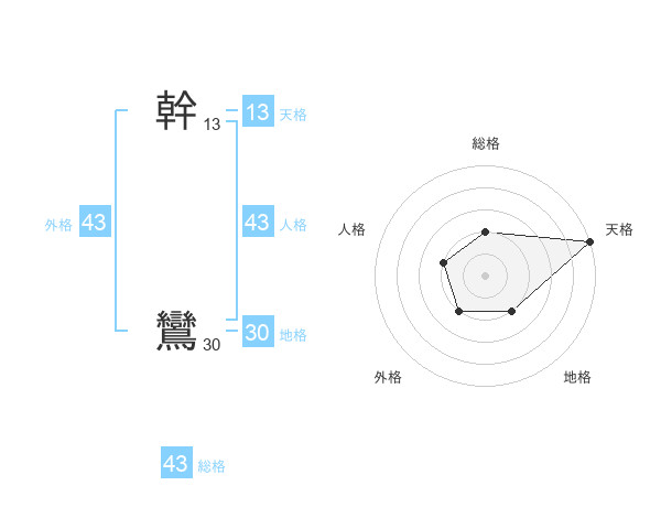 幹 鸞さんの総格は43画の2点!