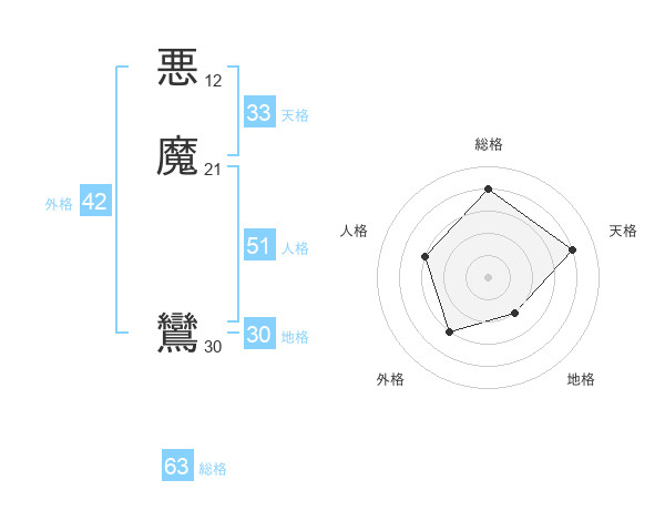 悪魔 鸞さんを姓名の画数から五運を鑑定
