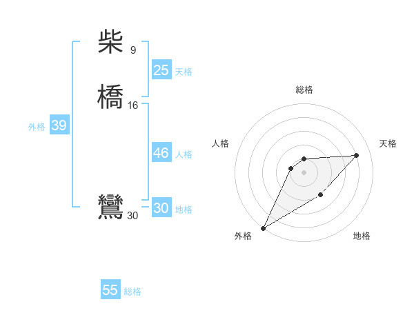 柴橋 鸞さんの総格は55画の1点!