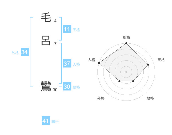 毛呂 鸞さんを姓名の画数から五運を鑑定