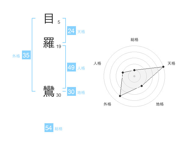 目羅 鸞さんの総格は54画の1点!