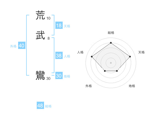 荒武 鸞さんの総格は48画の4点!