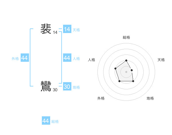 裴 鸞さんの総格は44画の2点