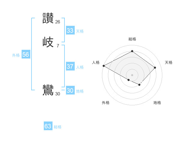 讃岐 鸞さんの総格は63画の4点!