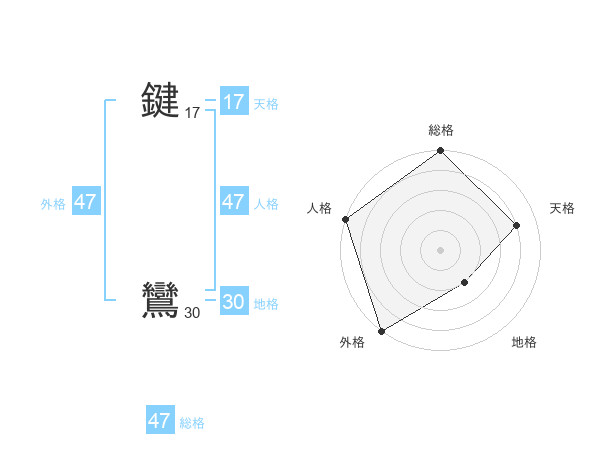 鍵 鸞さんの総格は47画の5点!