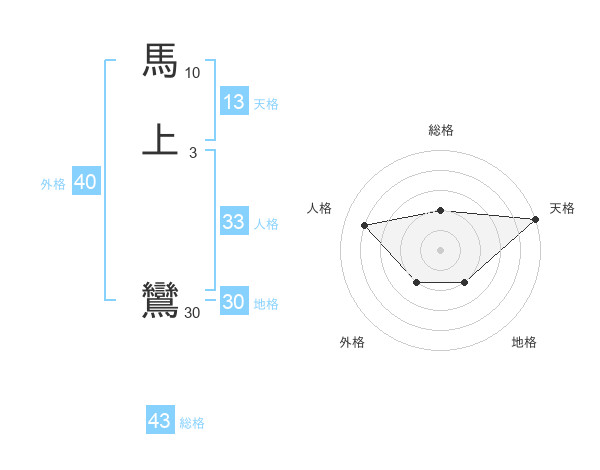 馬上 鸞さんの天格は13画の5点!