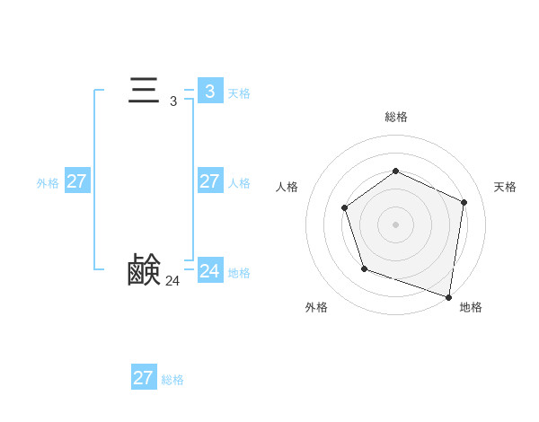 三 鹸さんの総格は27画の3点!