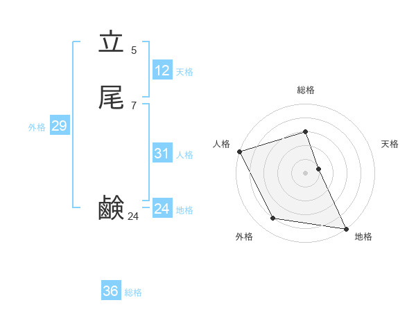 立尾 鹸さんを姓名の画数から五運を鑑定