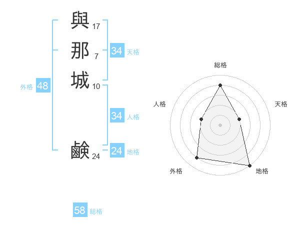 與那城 鹸さんの総格は58画の4点!