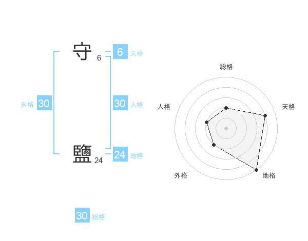守 鹽さんの総格は30画の2点!