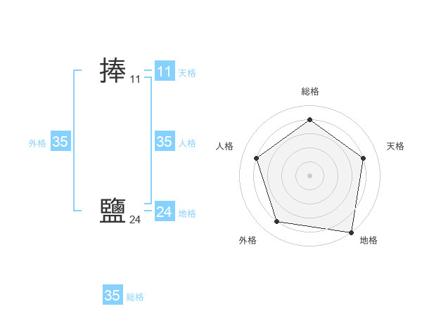 捧 鹽さんの外格は35画の4点!