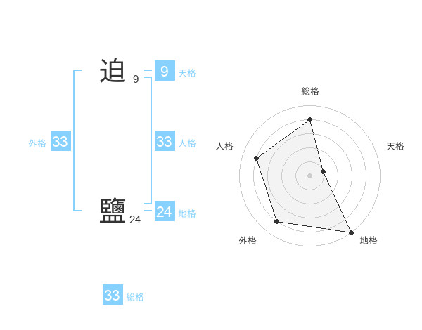 迫 鹽さんの外格は33画の4点!
