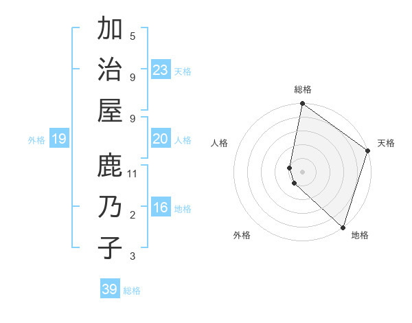 加治屋 鹿乃子さんを姓名の画数から五運を鑑定