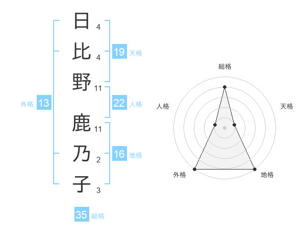 日比野 鹿乃子さんを姓名の画数から五運を鑑定
