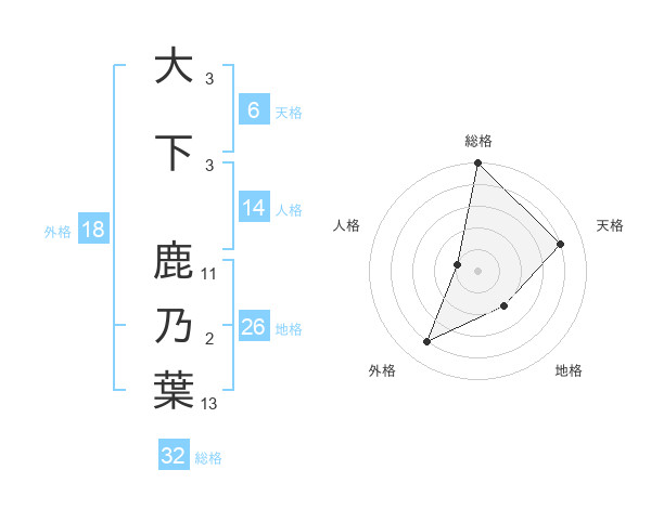 大下 鹿乃葉さんを姓名の画数から五運を鑑定