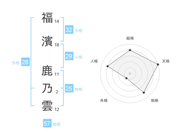 福濱 鹿乃雲さんを姓名の画数から五運を鑑定