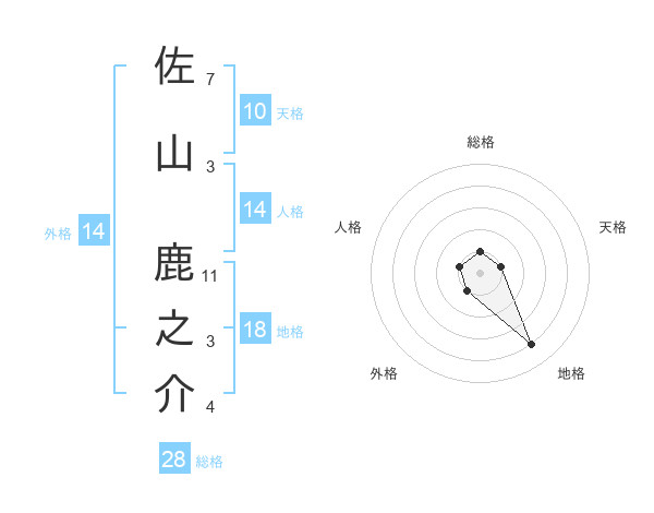 佐山 鹿之介さんを姓名の画数から五運を鑑定
