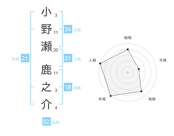 小野瀬 鹿之介さんを姓名の画数から五運を鑑定
