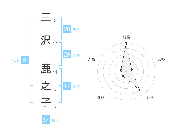 三沢 鹿之子さんを姓名の画数から五運を鑑定