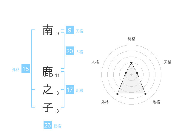 南 鹿之子さんを姓名の画数から五運を鑑定