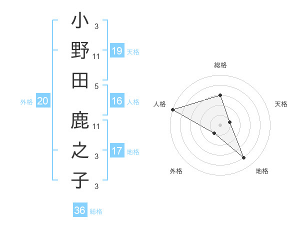 小野田 鹿之子さんを姓名の画数から五運を鑑定