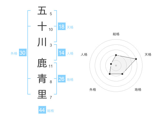 五十川 鹿青里さんを姓名の画数から五運を鑑定
