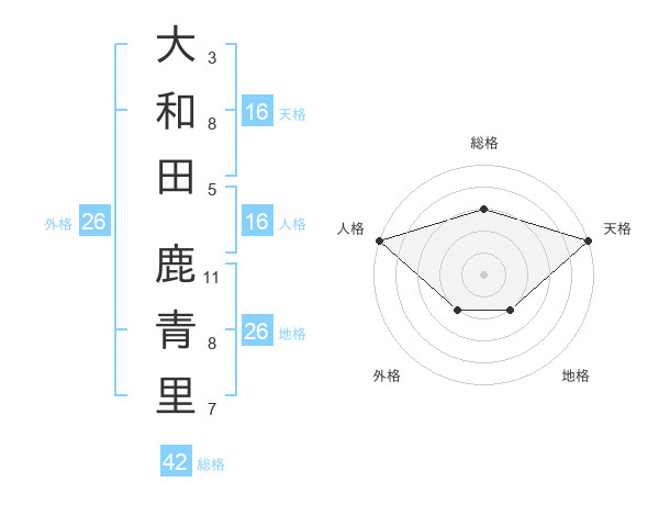 大和田 鹿青里さんを姓名の画数から五運を鑑定