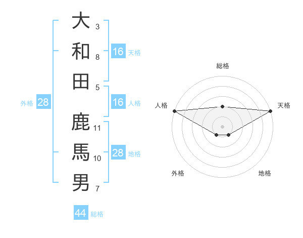 大和田 鹿馬男さんの天格は16画の5点!