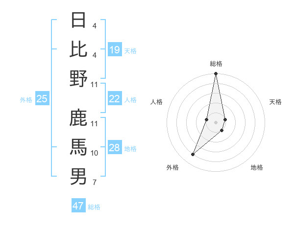 日比野 鹿馬男さんの総格は47画の5点!