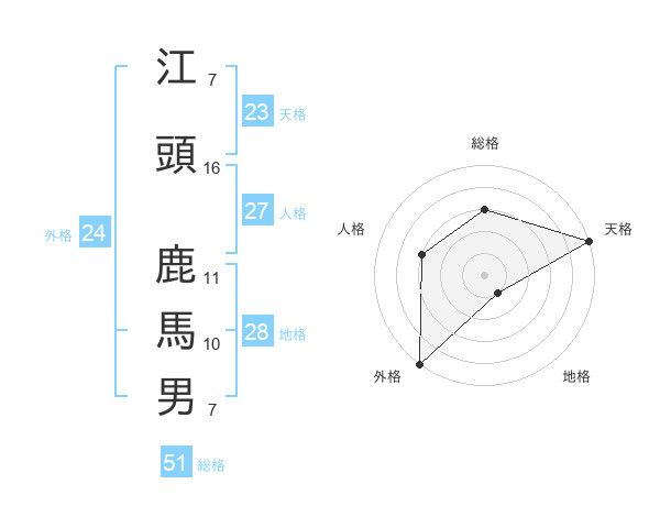 江頭 鹿馬男さんを姓名の画数から五運を鑑定