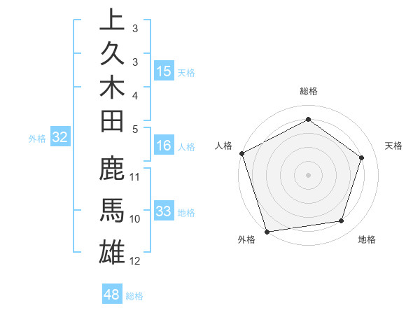 上久木田 鹿馬雄さんの地格は33画の4点!