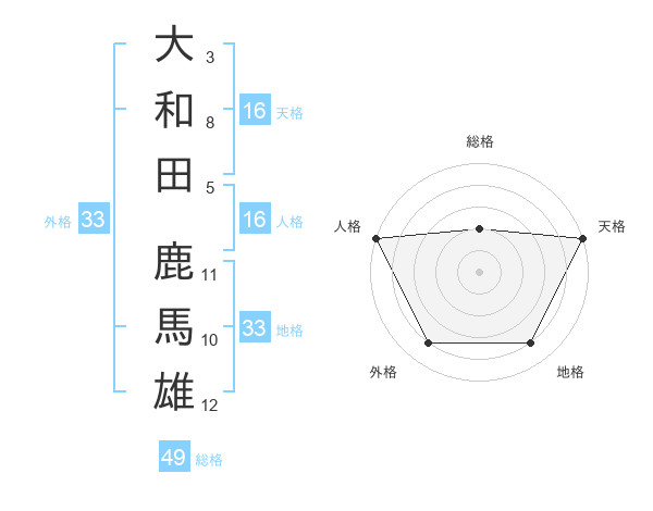 大和田 鹿馬雄さんを姓名の画数から五運を鑑定