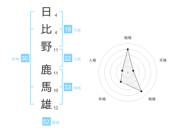 日比野 鹿馬雄さんを姓名の画数から五運を鑑定