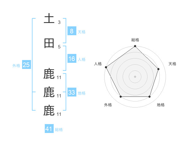 土田 鹿鹿鹿さんの総格は41画の5点!