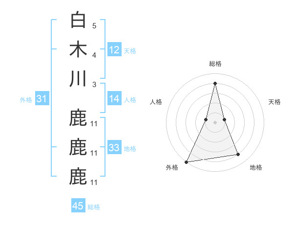 白木川 鹿鹿鹿さんの総格は45画の4点!