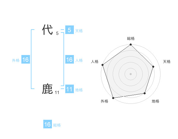 代 鹿さんの外格は16画の5点!