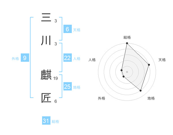 三川 麒匠さんを姓名の画数から五運を鑑定