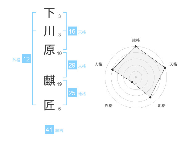 下川原 麒匠さんを姓名の画数から五運を鑑定