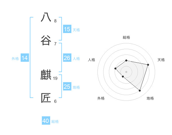 八谷 麒匠さんの天格は15画の4点!