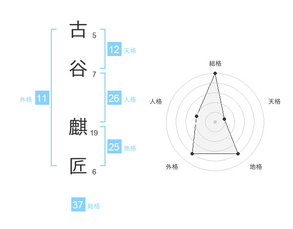 古谷 麒匠さんの総格は37画の5点!