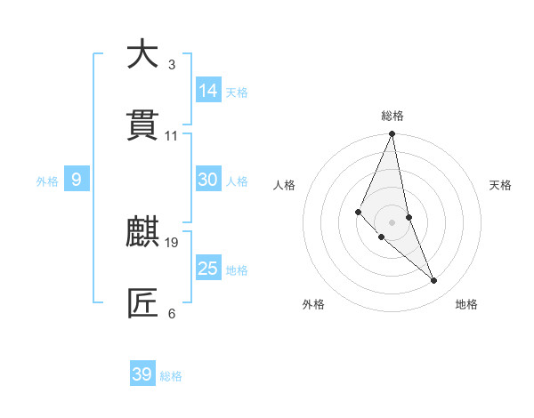 大貫 麒匠さんを姓名の画数から五運を鑑定