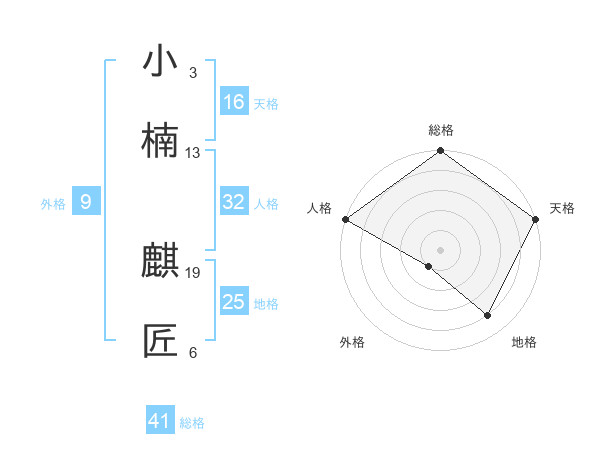 小楠 麒匠さんを姓名の画数から五運を鑑定