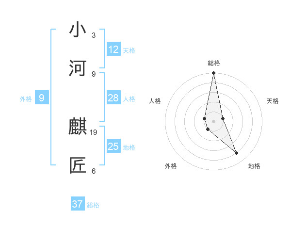 小河 麒匠さんの総格は37画の5点!